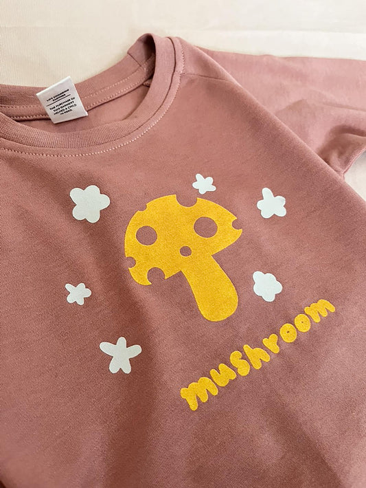 Organic Cotton Spring Mushroom Kids Playset l Toddler Tops and Pants | Baby Outfit Set | Kids Long Sleeve Tops and Legging
