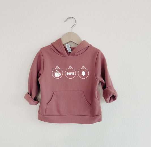 Personalized Christmas Ornaments Kids Soft Hoodie | Kids Christmas personalized Long Sleeve Hoodie | Toddler Christmas Hoodie